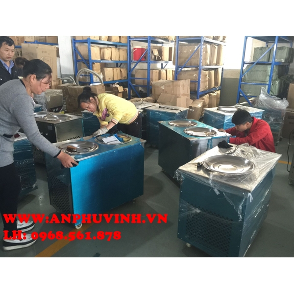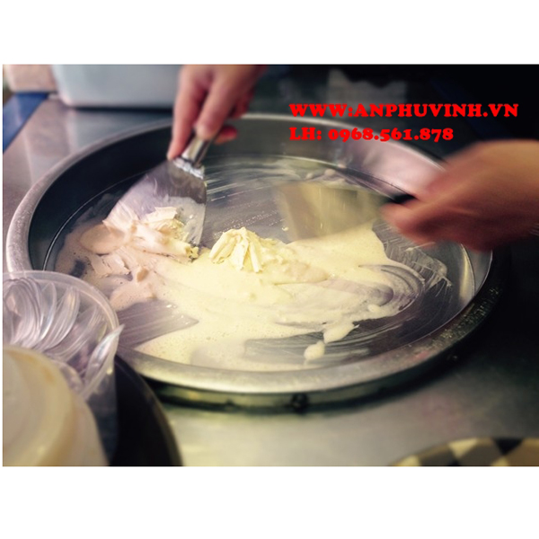 - Máy làm kem xào hay còn gọi là máy làm kem cuộn là loại máy hoàn toàn mới trên thị trường Việt Nam được Cty An Phú Vinh Việt Nam Phân phối.