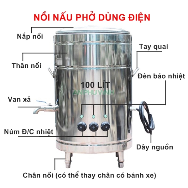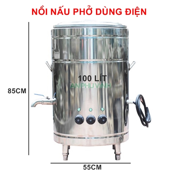 - Nồi nấu phở bằng điện 1 pha 220v hoặc 3 pha 380V được dùng rất nhiều hiện nay, thay thế hoàn toàn bếp than độc hại ảnh hưởng trực tiếp đến người tiếp xúc và môi trường.