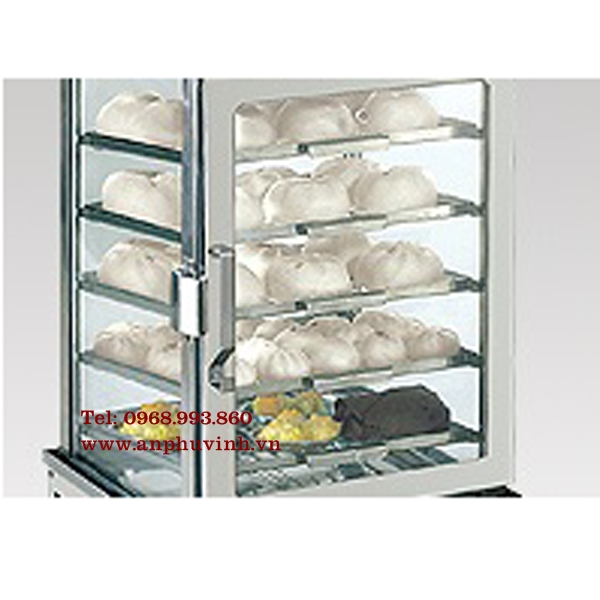 - Tủ hấp bánh bao cỡ nhỏ với 4 mặt kính phù hợp với các cửa hàng thức ăn nhanh đường phố hoặc siêu thị, dùng để giữ nóng và trưng bày bánh.