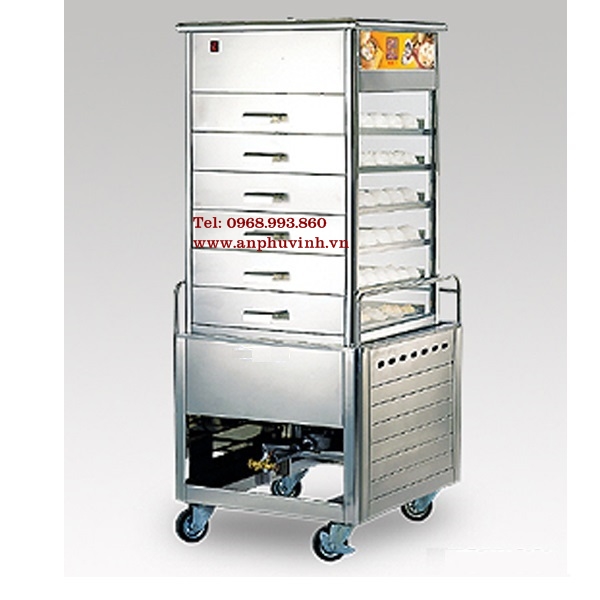 - Tủ hấp bánh bao cỡ nhỏ với 4 mặt kính phù hợp với các cửa hàng thức ăn nhanh đường phố hoặc siêu thị, dùng để giữ nóng và trưng bày bánh.